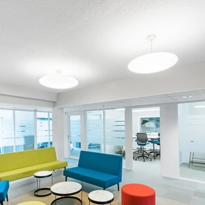 Stream revolutioniert die Bürobeleuchtung: Es ist das erste indirekte Deckenlicht ohne Deckenmontage. Die grosse Strahlkraft dieses Uplights breitet sich stimmungsvoll im Raum aus und kann mehrere Arbeitsplätze gleichzeitig perfekt ausleuchten. Die Beleuchtung der Arbeitsplätze kann über die Tunable White-Technologie, die verschiedene Helligkeitsstufen und die Anpassung der Farbtemperatur ermöglicht, auf die Bedürfnisse des Nutzers eingestellt werden. Und weil die Leuchte für die Inbetriebnahme nur ausgepackt und eingesteckt werden muss, kann Stream überall flexibel platziert werden.
