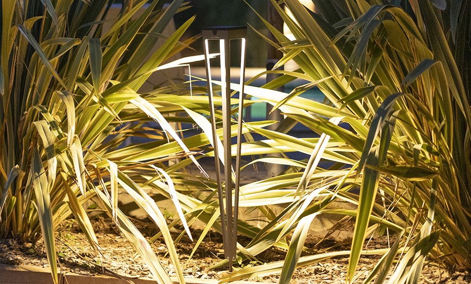 Kleine LED-Spots oder Strahler mit Erdspieß zwischen Töpfen oder Beeten setzen Pflanzen gezielt in Szene. Wichtig ist dabei eine zurückhaltende Lichtstärke, damit das natürliche Gleichgewicht im Gewächshaus erhalten bleibt. Von unten illuminiert wirken die Pflanzen und Sträucher atmosphärisch, voller Tiefe und spenden dem Betrachter ein warmes, erdendes Flair.