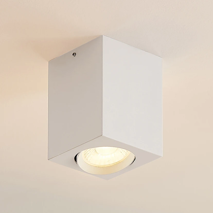 Weißer LED-Deckenstrahler Basir in eckiger Form