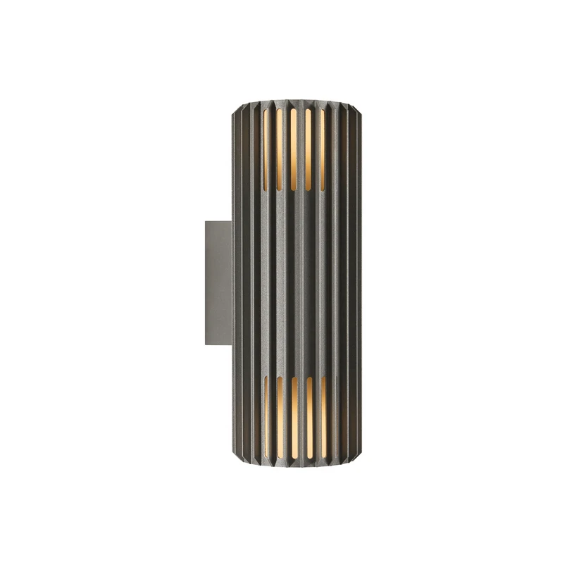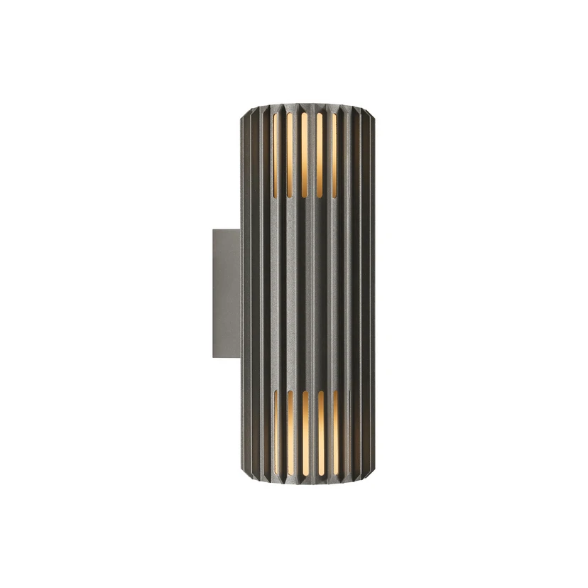 Die Außenwandleuchte Aludra Double besteht aus Aluminium und ist sowohl oben als auch unten mit einem Diffusor aus Polycarbonat bestückt. Sie ist ein Entwurf des renommierten Unternehmens Jacob Jensen Design für Nordlux. Skulpturales Design und moderner Minimalismus – das sind die Schlüsselbegriffe der Leuchtenserie Aludra. Die Wandleuchte mit nach oben und nach unten gerichtetem Schirm ist seewasserresistent und kann daher problemlos auch in Küstenregionen montiert werden. Sie erzeugt eine effektvolle Beleuchtung im Eingangsbereich, auf Terrassen oder Balkonen und wirkt besonders dekorativ, wenn sie zu mehreren Exemplaren angebracht wird.