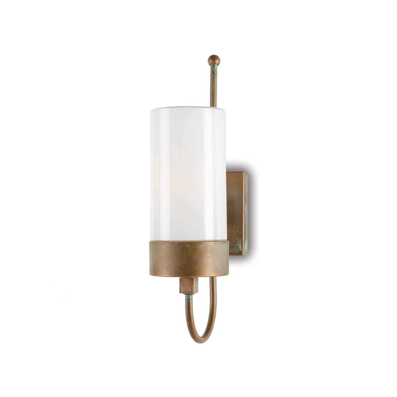 Die Außenwandleuchte Silindar 3356 wirkt in den dunklen Abend- und Nachtstunden durch ihr rundherum strahlendes Licht auffällig und bietet sich für die Absicherung des Außenbereichs, beispielsweise an der Eingangstür oder an der Garagenwand, an. Doch auch tagsüber trägt sie mit ihrem Messinggestell, das mit einem antiken Messing-Finish veredelt wurde, sowie dem hübschen Glaszylinder zu einem schmuckvollen Gesamteindruck bei.