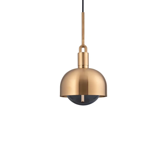 Hängeleuchte Forked - Doppelschirm aus Messing und Rauchglaskugel