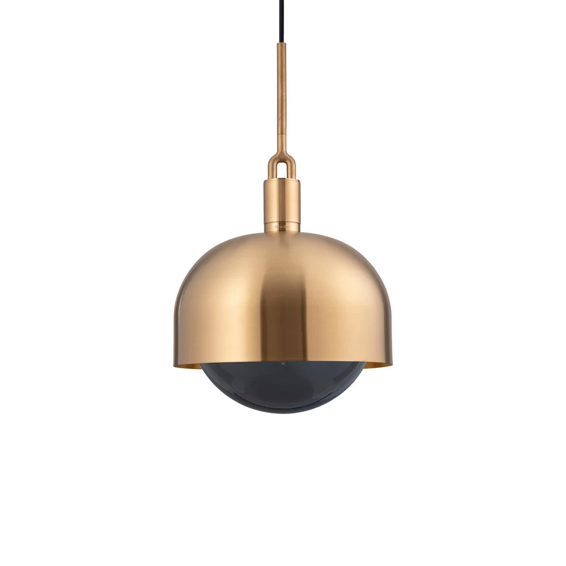 Hängeleuchte Forked - Doppelschirm aus Messing und Rauchglaskugel