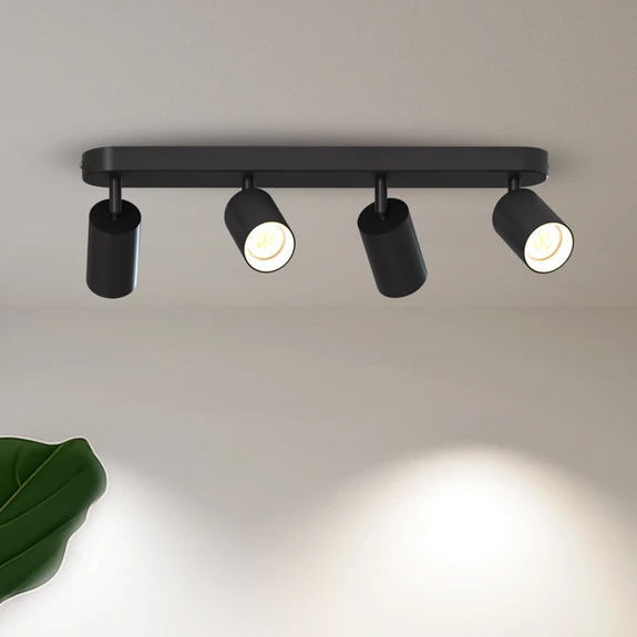 Calex GU10-Deckenspot, schwarz, Länge 49 cm, 4-flg., Metall
