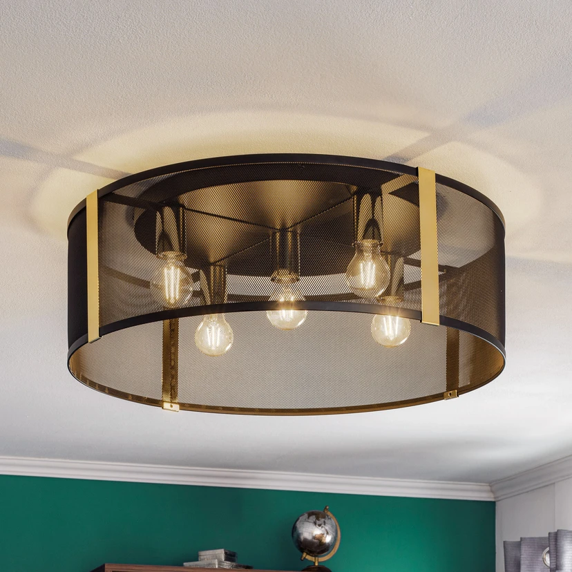 Die Deckenlampe Lavinia beeindruckt durch ihr modernes Design, das mit goldenen Streifen auf schwarzem Stahl eine elegante und zugleich zeitlose Ästhetik schafft. Diese fünfflammige Leuchte ist ein wahrer Blickfang und fügt sich nahtlos in verschiedene Wohnbereiche wie Wohnzimmer, Flurbereich, Küche und Esszimmer ein. Die hochwertige Verarbeitung aus europäischer Fertigung unterstreicht die Exklusivität und Langlebigkeit dieses Produkts.