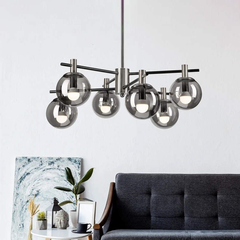 Die Deckenlampe Lilou vereint hochwertige Materialien und ein elegantes Design, das jedem Raum eine besondere Note verleiht. Gefertigt aus Glas und Metall, präsentiert sich die Lampe in Rauchgrau und Chrom und sorgt sowohl im Wohnzimmer als auch im Esszimmer für eine stilvolle Atmosphäre.