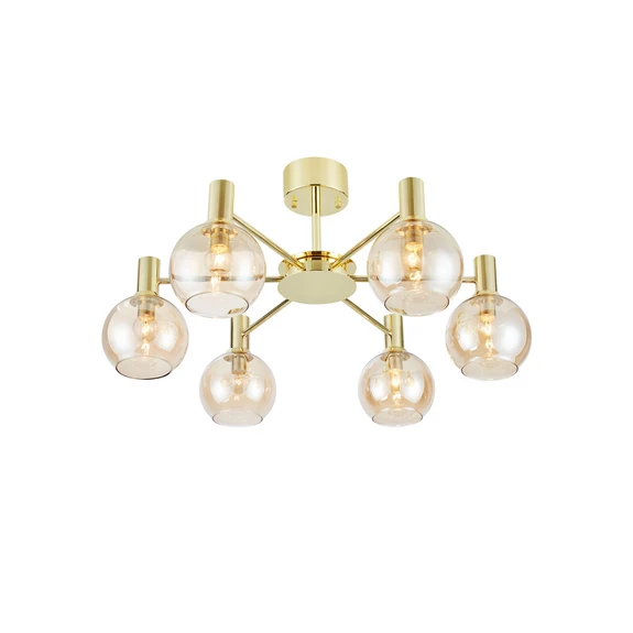 Die Deckenleuchte Ambra vereint hochwertige Materialien mit einer edlen Farbgebung in Messing und amberfarbenen Glasschirmen. Ihr Design schafft eine harmonische Verbindung aus zeitloser Eleganz und moderner Ästhetik, die jedem Raum eine besondere Atmosphäre verleiht. Ob im Wohnzimmer, Schlafzimmer, Esszimmer, Flurbereich oder in der Küche – diese Leuchte setzt stilvolle Akzente und wird zum Blickfang in jedem Ambiente.