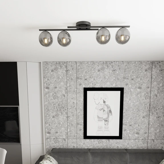 Vierflammige Deckenleuchte Kairo mit rauchgrau-transparenten Gläsern