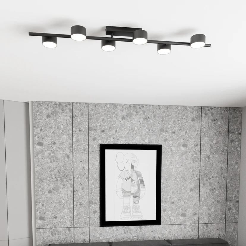 Der Deckenstrahler Bet vereint modernes Design mit funktionaler Vielseitigkeit und ist die ideale Wahl für die stilbewusste Einrichtung von Innenräumen. Gefertigt aus pulverbeschichtetem Stahl in elegantem Schwarz, fügt sich dieser Strahler nahtlos in verschiedene Raumkonzepte ein, sei es im Wohnzimmer, Esszimmer oder in der Küche. Mit seiner sechsflammigen Ausführung bietet er eine gleichmäßige und effektive Ausleuchtung, die jedem Raum eine besondere Atmosphäre verleiht.