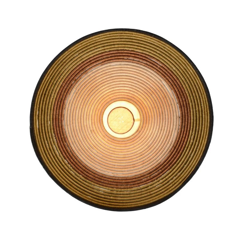 Harmonisch und natürlich wirkt die tellerförmige Wandleuchte Grass zum einen durch die verwendeten Materialien, zum anderen durch die schönen Farbkombinationen. Der Tellerschirm der Leuchte wurde von Hand aus Abacá, einer Pflanzenfaser aus dem Innern des gleichnamigen Baumes gefertigt, der innere, kleinere Schirm besteht aus Raffia-Geflecht. Raffia ist eine Faser, die aus dem ungeöffneten Blatt der afrikanischen Raffiapalme gewonnen wird. Diese Naturfasern lassen jede Leuchte zu einer Besonderheit werden und sind nicht nur eine zusätzliche Lichtquelle im Raum, sondern auch im ausgeschalteten Zustand eine sehr schöne Wanddekoration, ob einzeln oder zu mehreren Leuchten gleicher oder unterschiedlicher Größe und Farbe angebracht.