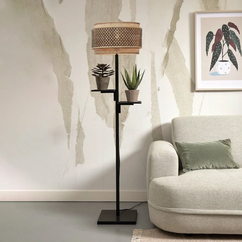 GOOD & MOJO Bhutan Stehleuchte mit Ablage, schwarz