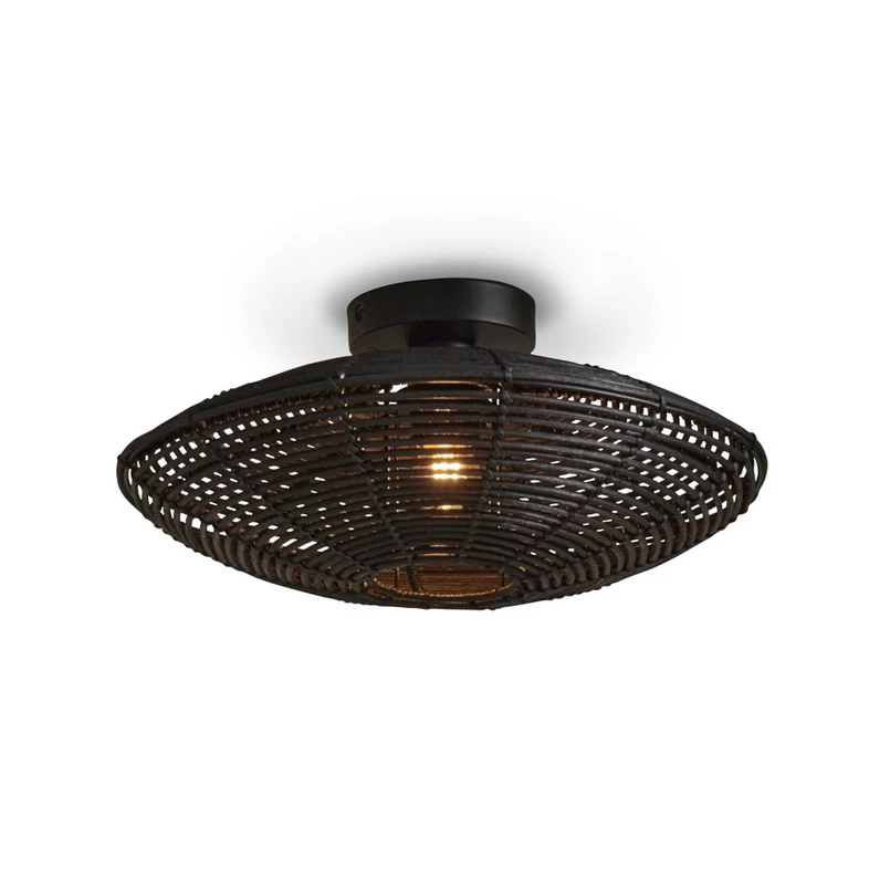 Die Deckenleuchte Tanami fügt sich mit ihrem flachen Schirm mühelos in unterschiedliche Umgebungen ein. Beispielsweise kann sie für die Beleuchtung des Wohnzimmers, des Flurbereichs sowie des Schlaf- oder Esszimmers eingesetzt werden. Die Deckenlampe besteht aus Rattan und einer Deckenhalterung aus Eisen, was Tanami eine moderne und zugleich natürliche Optik verleiht.
