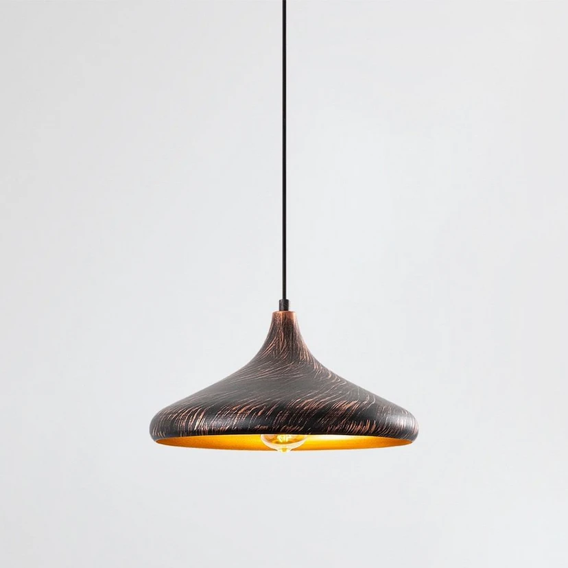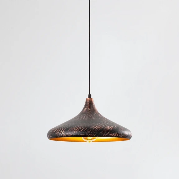 Die Hängeleuchte Barek in schwarz-kupfer mit einer goldenen Schirminnenseite vereint stilvolles Design mit funktionaler Vielseitigkeit. Gefertigt aus Metall, bietet diese Leuchte eine robuste und langlebige Konstruktion, die sich perfekt in verschiedene Raumkonzepte einfügt. Die Farbkombination verleiht der Leuchte eine zeitlose Eleganz, die sowohl im Wohnzimmer als auch im Esszimmer oder in der Küche Akzente setzt.