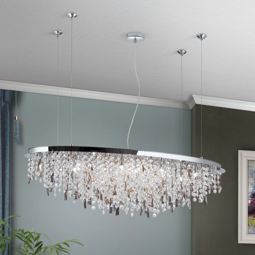 Hängeleuchte Crystalriver mit Kristallbehang chrom