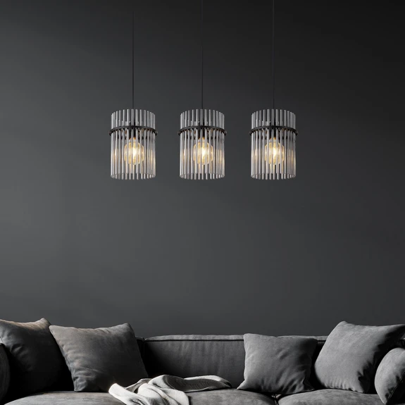 Hängeleuchte Gorley, Länge 80 cm, rauchgrau, 3-flg., Glas Lieferzeit: 9 - 13 Werktage