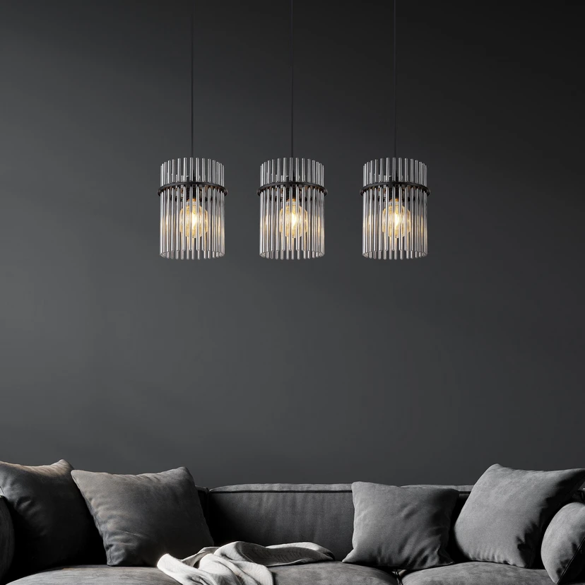 Hängeleuchte Gorley, Länge 80 cm, rauchgrau, 3-flg., Glas
