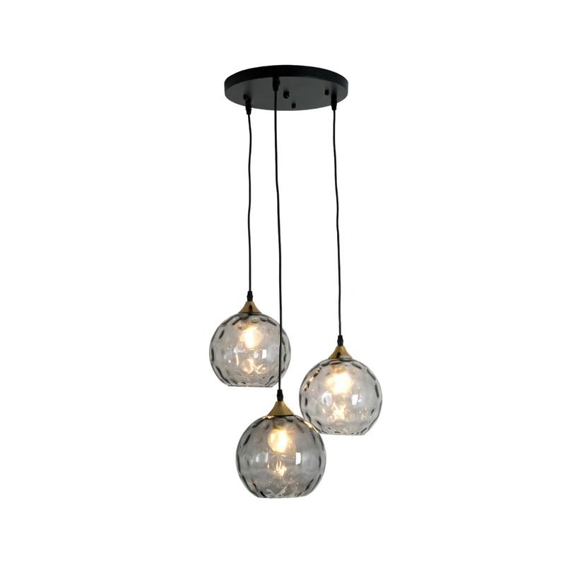Hängeleuchte Milano, drei Schirme aus Rauchglas