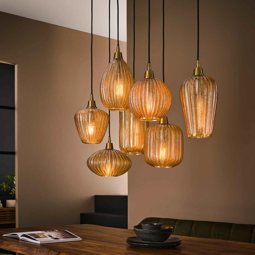 Hängeleuchte Pattern aus Braunglas, siebenflammig