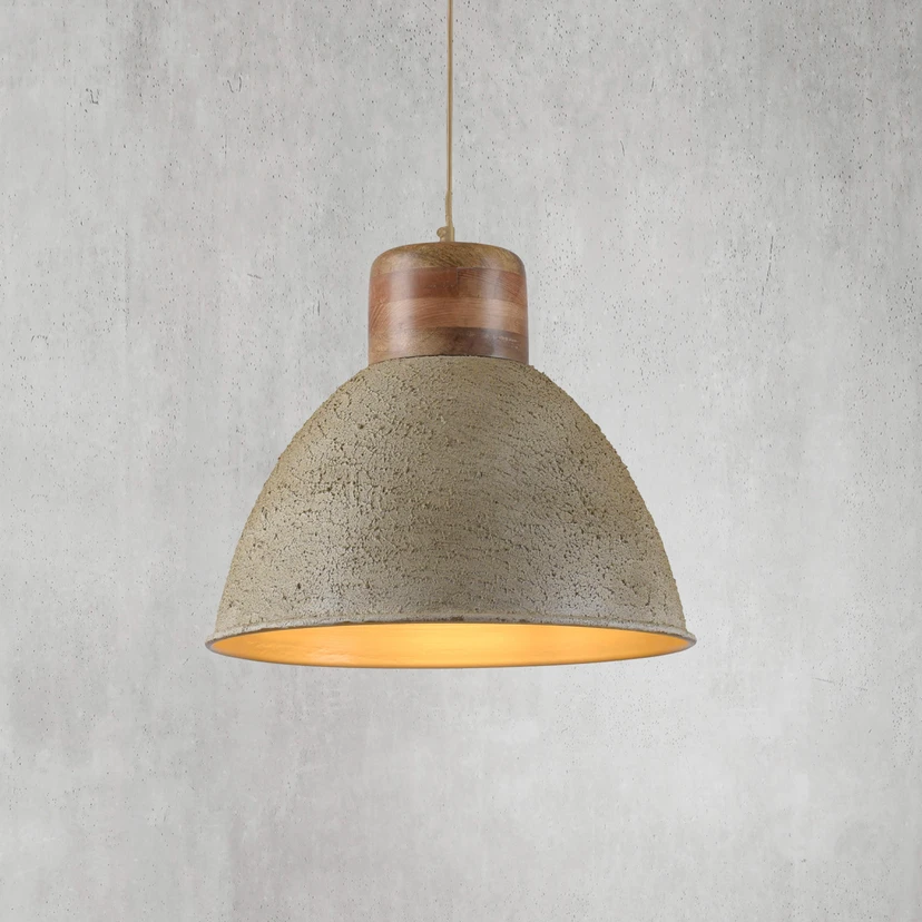 Hängeleuchte Samia, Mangoholz, beige strukturiert