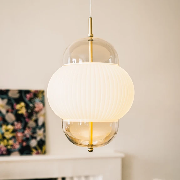 Hängeleuchte Shahin XL aus mundgeblasenem Glas und Messing