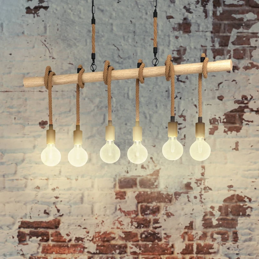 Hängeleuchte Youngstown, Länge 100 cm, schwarz/braun, 6-flg.
