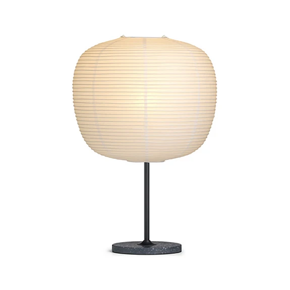 Bei dieser schönen Tischleuchte steht der weiße Schirm aus starkem, japanischem Reispapier im Fokus. Er thront auf einem schlanken Stahlstab, der in eine dezente runde Basis übergeht. Die Struktur des Papiers verleiht dem abstrahlenden Licht, das durch den Schirm rundherum abgegeben wird, eine besondere Note.
