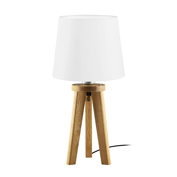 Dreibein-Tischleuchte Elli mit Holzgestell und Stoffschirm