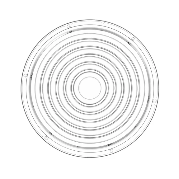 Die klare Linse besitzt einen Abstrahlwinkel von 90° und dient als Zubehörteil für die LED-Hallenstrahler der Serie CORE 3.0 BASELine von InnoGreen®.