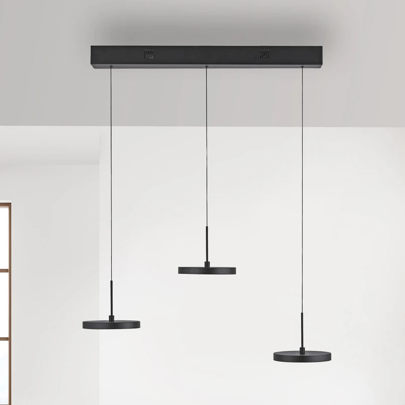 JUST LIGHT. LED-Hängeleuchte Plata, schwarz, 3-fl., 3.000 K