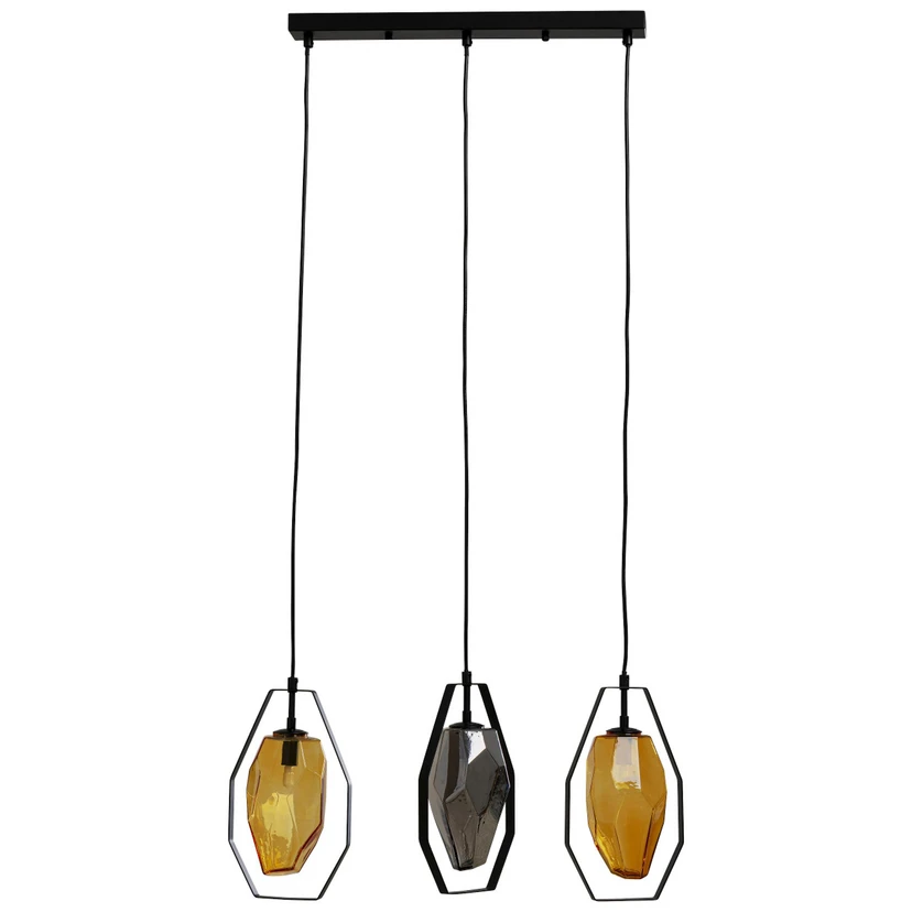 Pendelleuchte Diamond Fever Dining mit drei Glasschirmen in Metallrahmen
