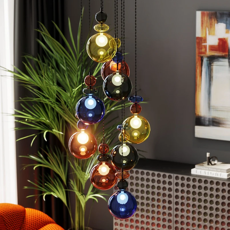 Neunflammige Glas-Pendelleuchte Mazzo Nove in farbenfroher Gestaltung