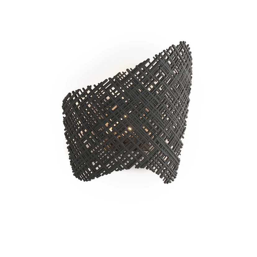 Der Schirm der Wandleuchte Tea sieht aus, als wäre er aus einem besonders grobem Stoffgewebe, doch der Eindruck täuscht: Tea Applique besteht aus recyceltem, in der Masse gefärbtem ABS und ist daher besonders nachhaltig. Wird ein dimmbares Leuchtmittel eingesetzt, kann die Wandleuchte auch über einen externen Dimmer in der Helligkeit angepasst werden.
