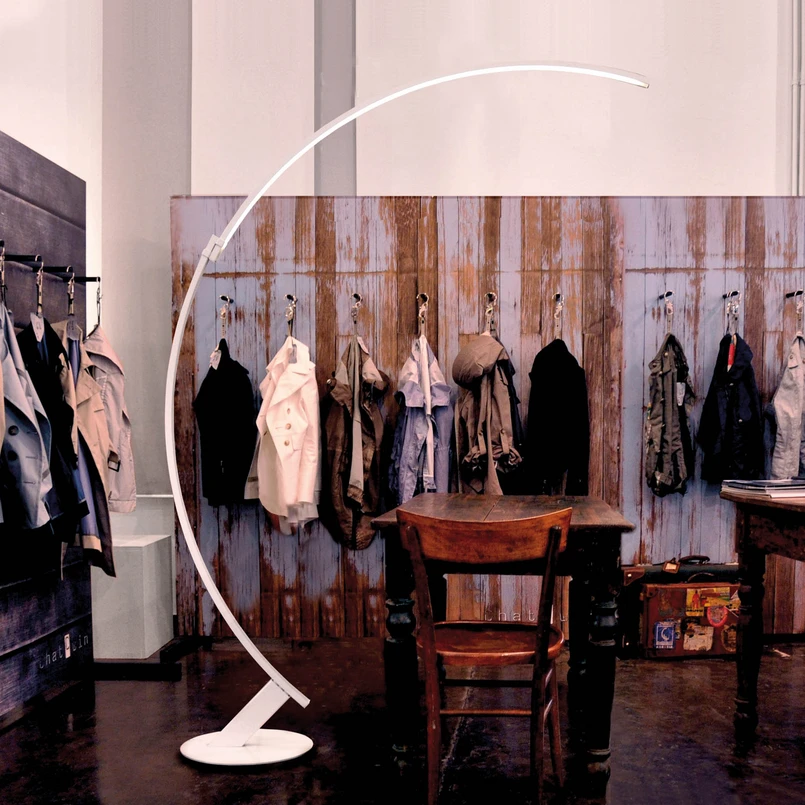 Eine LED-Bogenstehlampe mit außergewöhnlicher Funktion - das ist Kyudo, designt von Hansandfranz für den italienischen Leuchtenhersteller kdln. Sie besticht durch ihre Einzigartigkeit und ihr vielseitiges Design. Der Diffusor mit den eingebauten, dimmbaren LEDs ist hier auf einer Gleitschiene montiert. Diese kann beliebig stufenlos verschoben werden, sodass die LED-Stehleuchte Kyudo im ausgefahrenen Zustand einen großen Bogen zeigt und zusammengefahren nur eine Art Sichel. Somit kann das Aussehen und die Lichtwirkung im Raum immer wieder neu gestaltet werden.