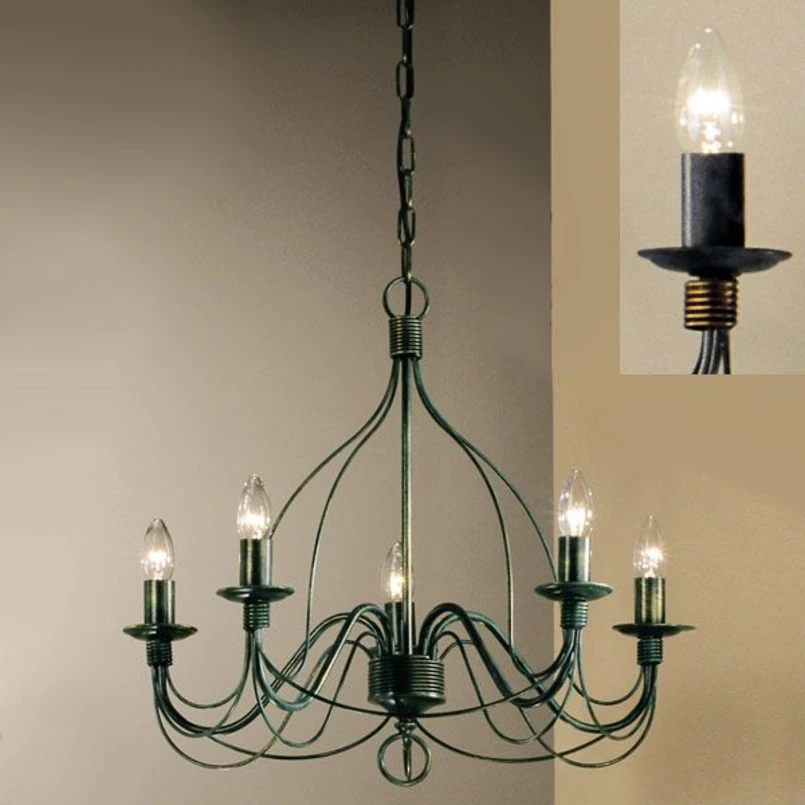 Der Kronleuchter FILO überzeugt ganz besonders durch das elegant und anmutig geschwungene Gestell. Dabei sind viele Streben so geschwungen, dass sie ein wellenförmiges Gesamtbild entsteht und bis zu den fünf Leuchten führt. Diese sorgen durch die runde Verteilung für eine gute Beleuchtung des Raums.
