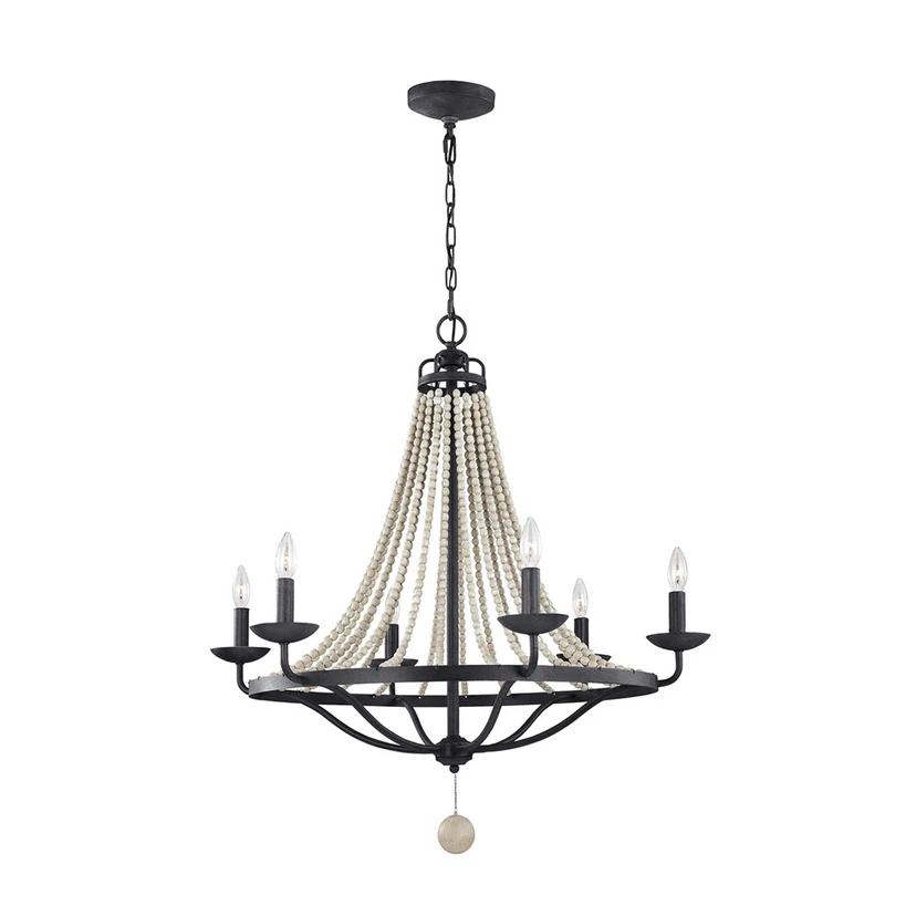 Sechsflammiger Kronleuchter Nori mit Perlen aus Treibholz