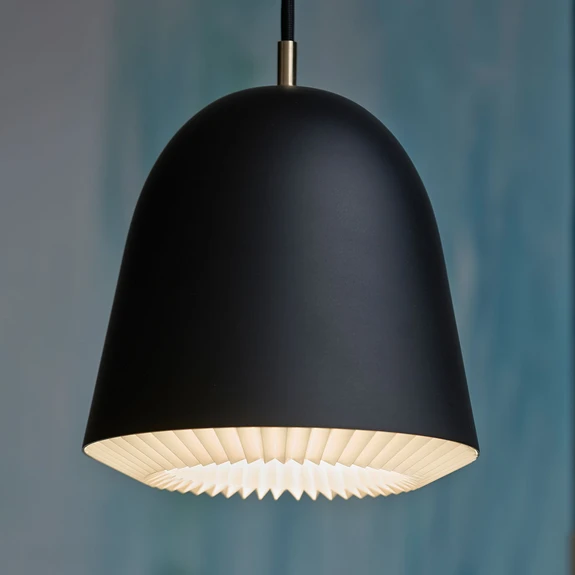 Jede einzelne Leuchte des dänischen Herstellers Le Klint wird von Hand vor Ort gefertigt. Nur so kann der Qualitätsanspruch erfüllt werden, den Le Klint an sein Sortiment stellt. Die Pendelleuchte Caché kombiniert die beispiellose Querfaltentechnik, für die der Hersteller bekannt ist, mit der Schlichtheit einer gewöhnlichen Pendelleuchte. Doch der Lichtschein, der entsteht, ist wahrlich kein gewöhnlicher. Durch die Ecken, Kanten, Höhen und Tiefen, die durch die Falten zustande kommen, wird ein einzigartiges Licht- und Schattenspiel erzeugt.