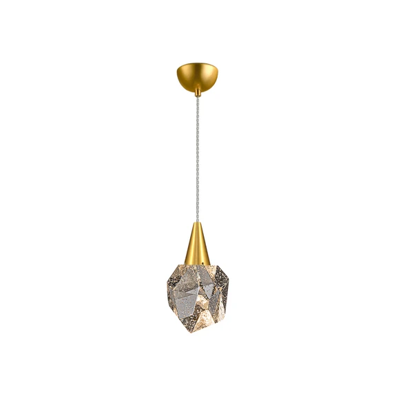 Die Leuchte vereint anspruchsvolles Design mit funktionaler Beleuchtung und schafft so ein Ambiente, das sowohl für entspannte Abende als auch für gesellige Dinnerpartys geeignet ist. Ihre klare Linienführung und die goldene Farbgebung verleihen jedem Raum einen Hauch von Luxus, während die polyedrische Form des Glases das Licht auf faszinierende Weise bricht und verteilt.
