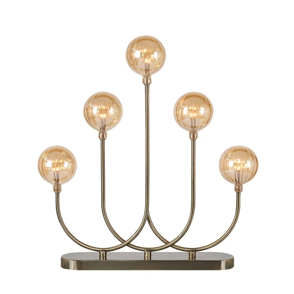 LED-Kerzenhalter Enys, messing antik, Eisen/Glas, 5-flammig