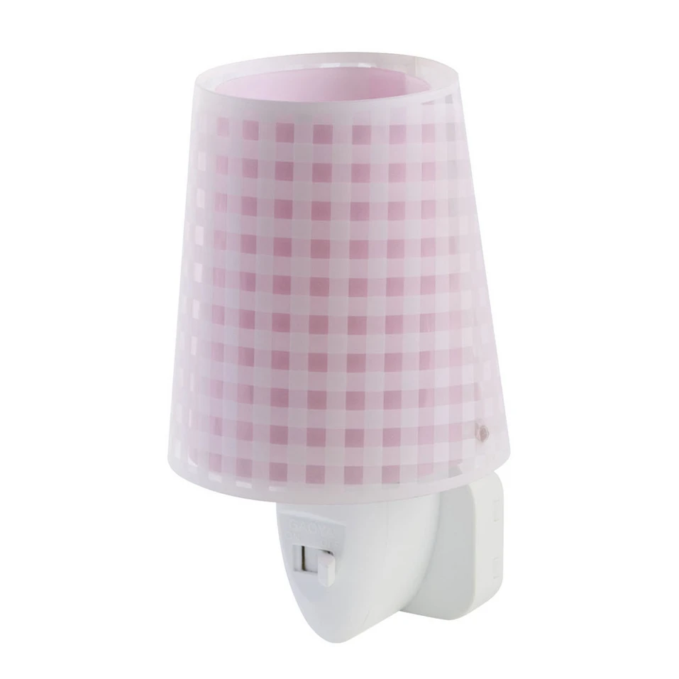 Sanftes Orientierungslicht in der Dunkelheit - mit dem LED-Nachtlicht Vichy zum Einstecken in die Steckdose ist das kein Problem. Durch das dezente Leuchten in der Dunkelheit kann Kindern in der Nacht die Angst genommen werden und es ergibt sich gleichzeitig die Möglichkeit, sich zu orientieren. Das kindgerechte Design ergibt sich aus den übereinander liegenden Schirmen. Über dem einfarbigen Schirm liegt ein zweiter, der das typische Vichy-Karo Muster darstellt. Durch die Zwischenräume der Karos schimmert die Farbe und das Licht sanft hindurch. Das Nachtlicht lässt sich bequem über den Kippschalter unterhalb des Schirmes an- und ausschalten, sodass es nicht aus der Steckdose genommen werden muss.
