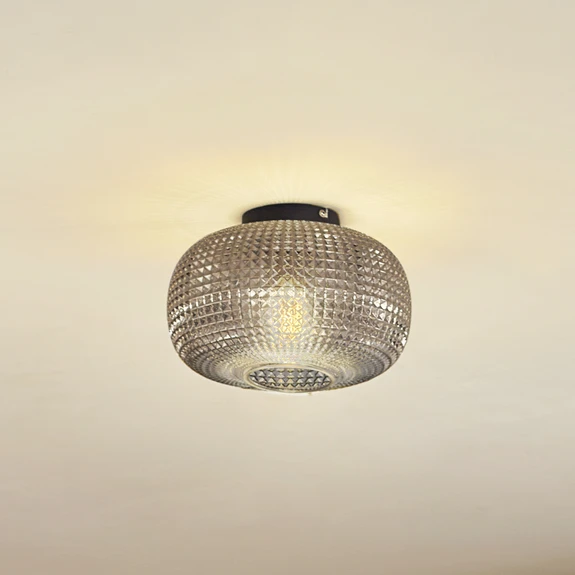 Die Deckenleuchte Hildur vereint in ihrem Design sowohl moderne als auch Vintage-Elemente, was sie zu einem vielseitigen Beleuchtungselement für diverse Wohnräume macht. Das rauchfarbene Glas sorgt für eine sanfte Lichtverteilung, während der schwarze Baldachin einen markanten Kontrast bildet und das Gesamtbild abrundet. Obwohl ein Dimmer bei diesem Modell nicht enthalten ist, lässt sich die Helligkeit durch den Anschluss an einen externen Dimmer nach individuellen Wünschen regulieren, um die gewünschte Ambientebeleuchtung zu erzielen (Bitte beachten Sie, dass der externe Dimmer separat erworben werden muss).