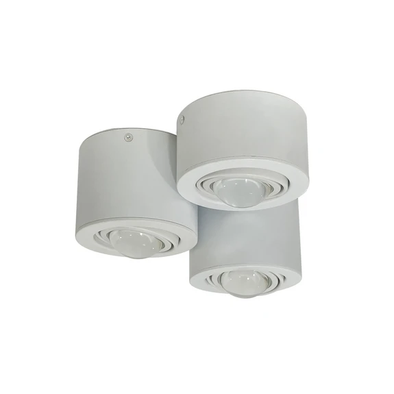 Dieser Deckenspot ist schlicht und modern. Er besteht aus Eisen und besitzt eine weiße Oberfläche. Die drei Leuchtenschirme sind unterschiedlich groß und zylinderförmig. Die mitgelieferten GX53-Leuchtmittel haben eine gewölbte Linse und sehen daher aus wie gläserne Halbkugeln. Jylas Köpfe sind um 15° schwenkbar, somit kann der Lichtstrahl nach eigenem Bedarf ausgerichtet werden.