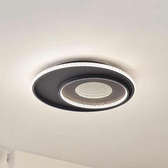 Die LED-Deckenlampe Inessa vereint modernes Design mit funktionaler Beleuchtung. Gefertigt aus Metall und Acryl, fügt sie sich nahtlos in zeitgenössische Wohn- und Esszimmer ein. Das schwarze Finish verleiht der Lampe eine stilvolle Ästhetik, die jeden Raum aufwertet.