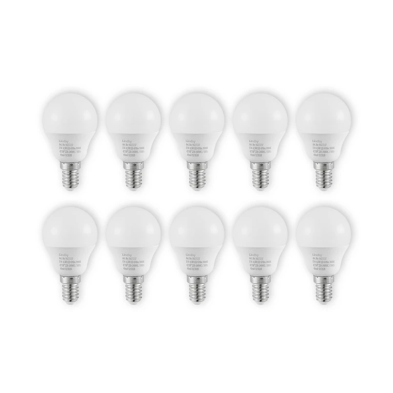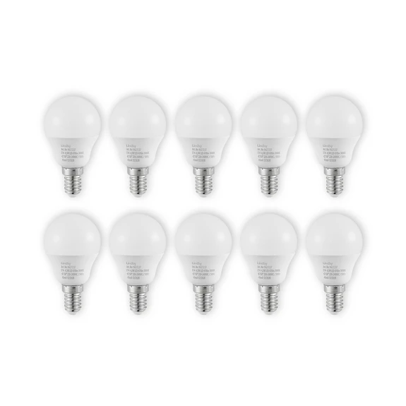 In den verschiedensten Leuchten lässt sich diese LED-Lampe mit E14-Sockel nutzen. Das Leuchtmittel besteht aus opalweißem Kunststoff und ist nicht dimmbar. Die Lampe kommt in einem praktischen 10er-Set.
