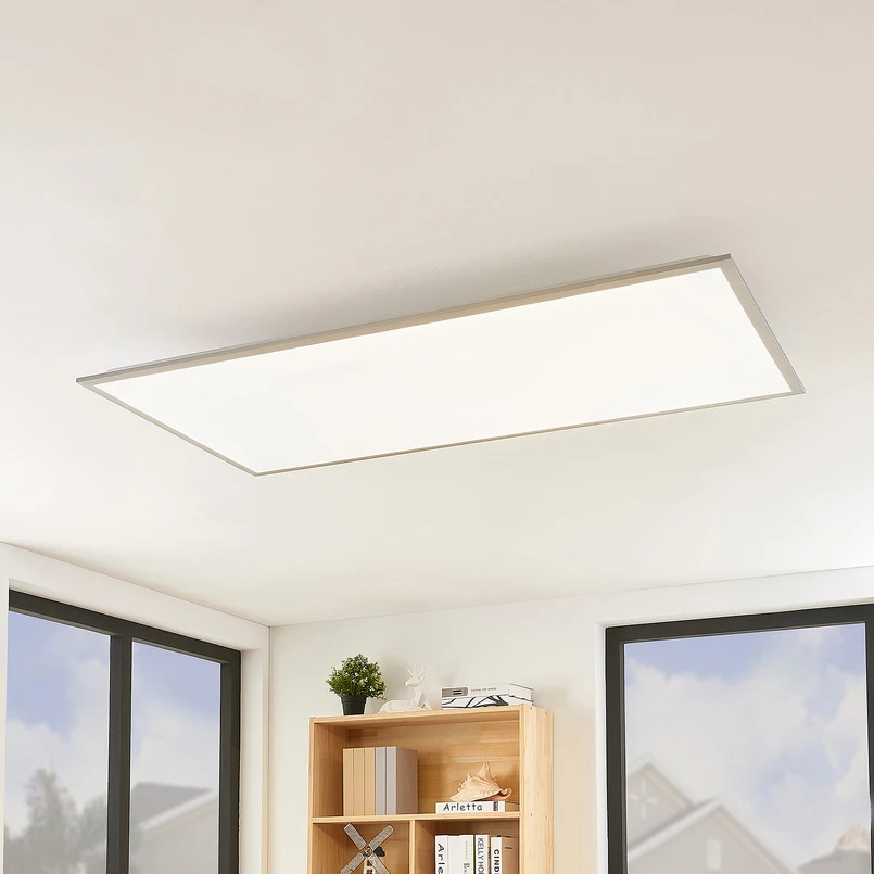 Das große LED-Panel Stenley punktet mit leuchtstarker Technik und einem modernen, schlanken Design in Form eines Rechtecks. Die Ränder des Panels wurden mit Aluminium in einem modisch grauen Finish verarbeitet, was eine sehr elegante und solide Wirkung hat. Die weiße Leuchtabdeckung aus langlebigem Kunststoff sorgt dafür, dass das Licht sanft und homogen im ganzen Raum verteilt wird. Sie hat die Funktion eines Diffusors und sorgt für eine blendfreie und gleichmäßige Beleuchtung.