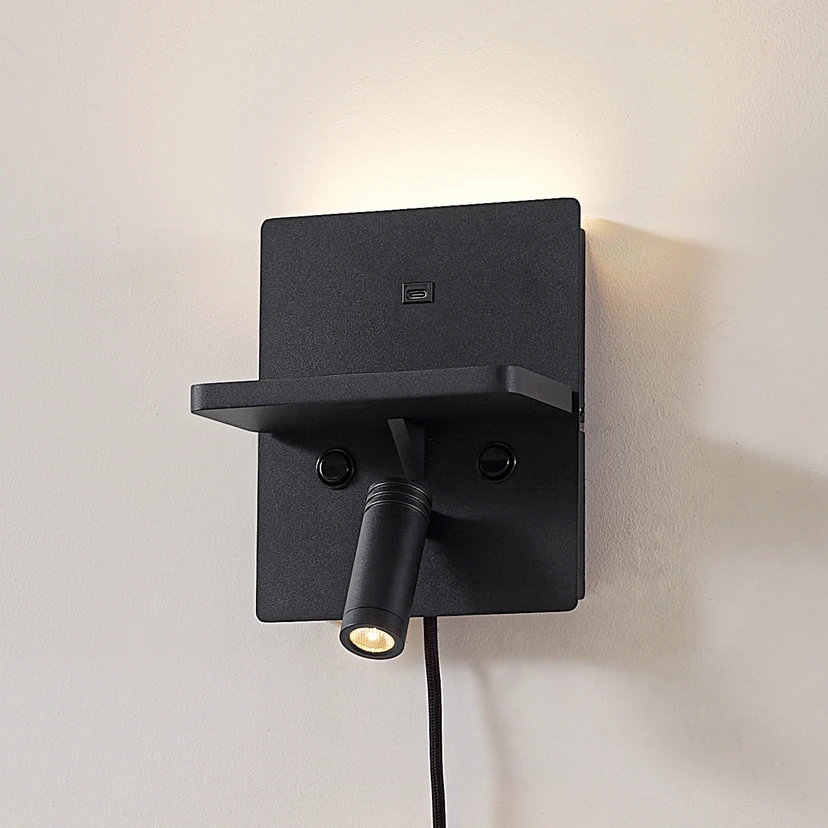 Lindby LED-Wandlampe Auden, schwarz, Stecker, Ladestation
