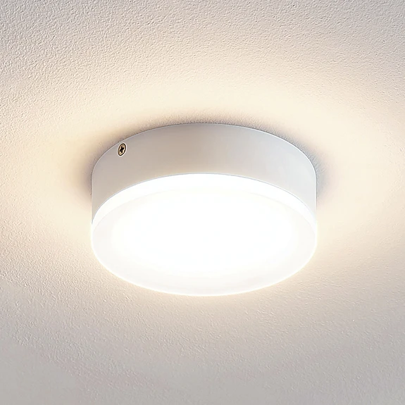 Dreistufig dimmbare LED-Deckenleuchte Leonta mit weißem Gehäuse in runder Form