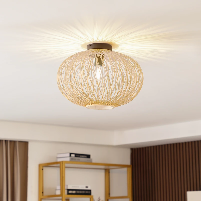 Lindby Solvira Deckenlampe, Bambusgeflecht, rund