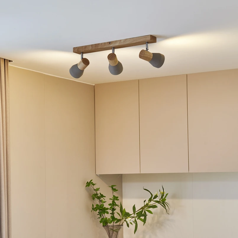 Filiz ist eine Deckenleuchte mit drei einzelnen Strahlern, die gut für die Grundbeleuchtung eines Raumes in Betracht gezogen werden kann. Jeder Schirm, der sowohl Beton als auch Holz integriert, lässt sich bei Bedarf drehen oder schwenken, so dass man den Lichtschein besser an die Gegebenheiten im Raum anpassen kann.