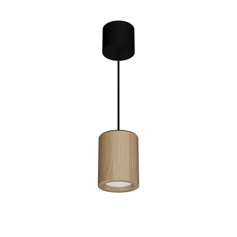 Der Holzkorpus und die schwarze Deckendose fügen sich mühelos in zahlreiche Raumkonzepte und Einrichtungsstile ein. Das Betriebsgerät ist in der Deckendose integriert und trägt zur Effizienz der Pendellampe bei. Insgesamt ist die Hängeleuchte Timba eine nachhaltige und ästhetische Beleuchtungslösung, die durch ihre Funktionalität und ihr Design überzeugt. Sie lässt sich sowohl im privaten als auch im gewerblichen Umfeld nutzen.
