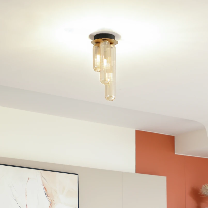 Lucande Deckenleuchte Freylin, 3-flammig, amber, Glas, 15 cm